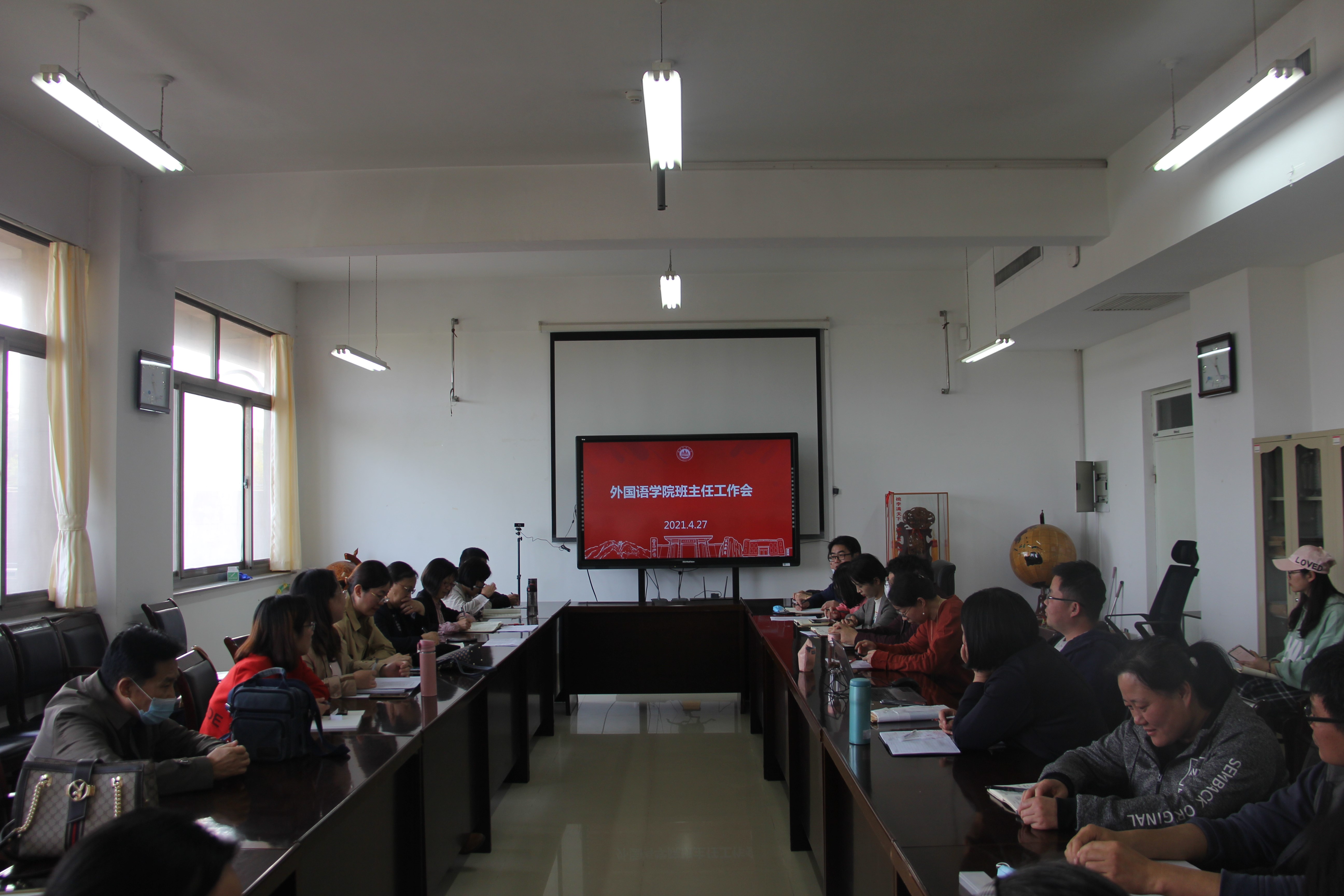 4月25日,外语学院在文理大楼321召开班主任工作会。学院班子成员、班主任和全体辅导员参加会议。