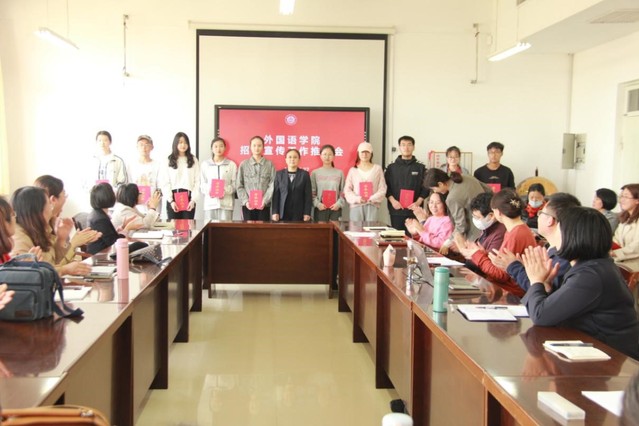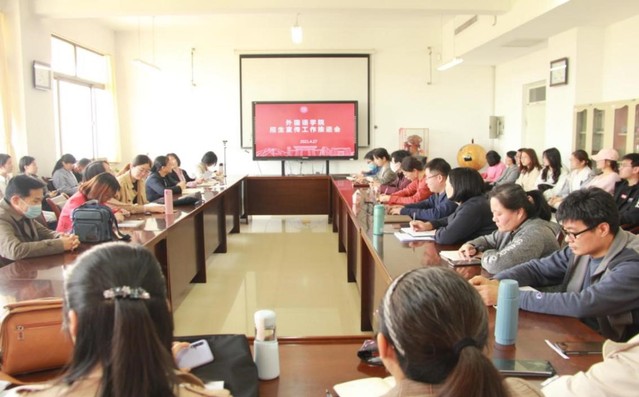 4月27日,外语学院在文理大楼321召开招生宣传工作推进会。学院班子成员,各系室主任、专业主任,全体辅导员及寒假招生宣传学生参加会议。