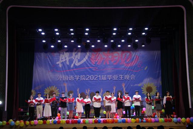 6月17日,开元kaiyuan(中国)在北校区西礼堂举办“再见,再相见”主题毕业晚会,欢送2021届毕业生。学院班子成员、各系室主任、辅导员、全体毕业生和低年级学生出席晚会。