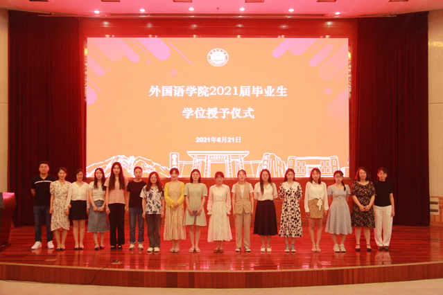6月21日,外语学院在文理大楼报告厅举办2021届毕业生典礼。学院班子成员、教授委员会主任、各系负责人、2021届全体毕业生及部分在校生代表参加活动。