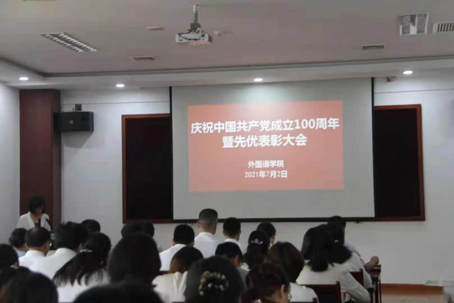 7月2日,外语学院庆祝中国共产党成立100周年暨先优表彰大会在文理大楼211举行。学校党委常委、组织部部长岳远彬,学院班子成员,党委委员和全体师生党员参加会议。
