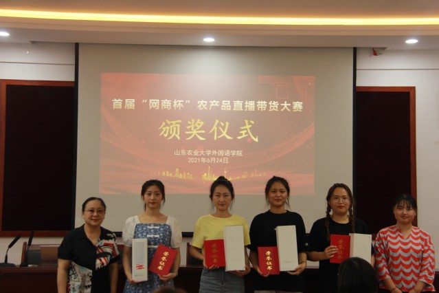 6月24日,外语学院在文理大楼211举办网商杯农产品直播带货大赛颁奖仪式,活动圆满落下帷幕。学院班子成员、山东网商集团工作人员、辅导员和参赛学生代表参加活动。