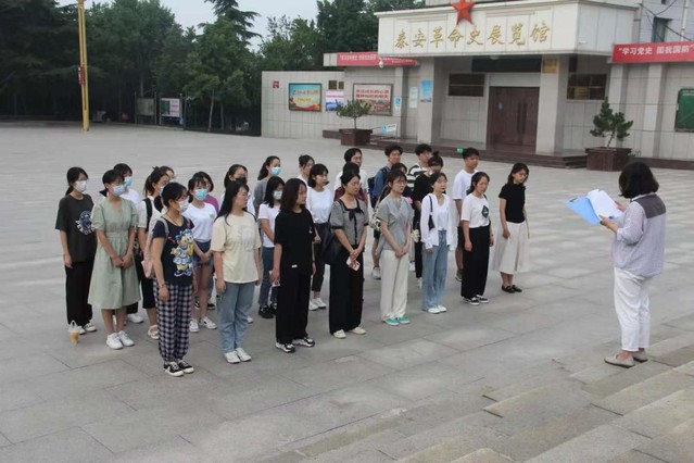 6月30日,外语学院团委书记吕夏毅在泰安市革命烈士陵园为学生党员上党课。学院辅导员和2018级全体党员参加活动。