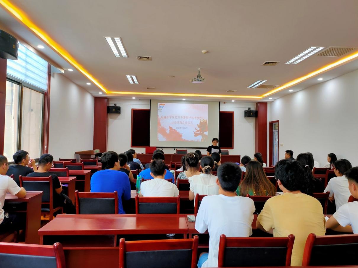 7月14日,外语学院于文理大楼211举行2021年暑期“三下乡”社会实践暨青鸟计划启动仪式,全体辅导员及部分实践团队参加仪式。