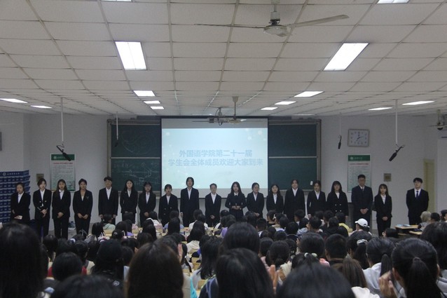 10月9日,外语学院第二十一届学生会纳新宣讲在泮河校区N201进行,学院2021级全体新生参加宣讲会。