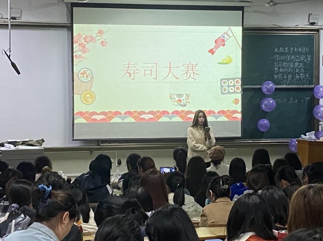 10月10日,外语学院在岱宗校区5N201举办寿司制作大赛,2019级、2020级和2021级部分学生参加比赛。