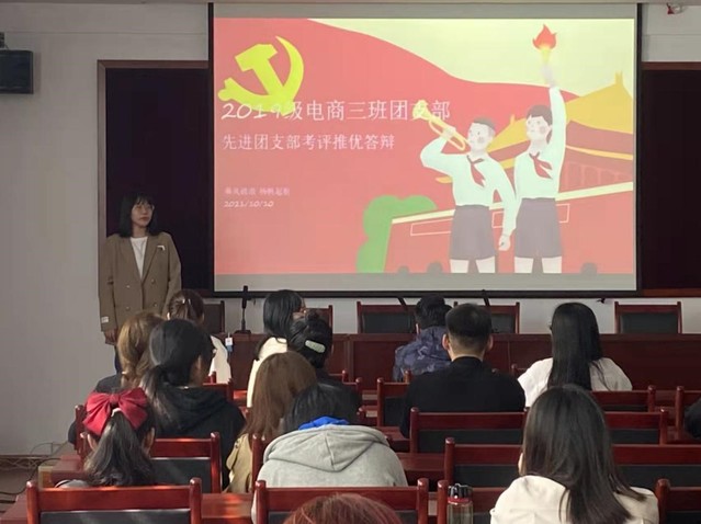 活动中,各班团支部书记依次展开答辩演讲,通过PPT对班级团支部团结、积极、向上的风采进行全面展示。各班团支部丰富多彩的团建活动激发了同学们的爱国主义精神,增强了班级凝聚力;各班团支部积极组织团员青年参加学校、学院学科竞赛等各项文体活动,获得重大奖项荣誉,营造了浓厚的班级团支部文化氛围。
