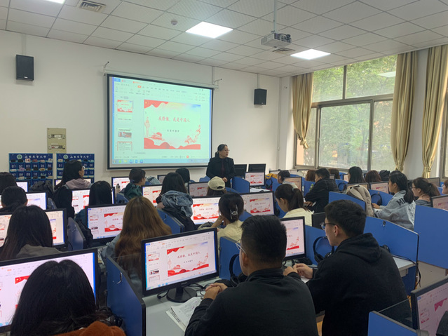 10月13日,外语学院院长翟红华教授在文理大楼206为青年学子上思政课,2019级商务英语1班全体学生参加思政课。