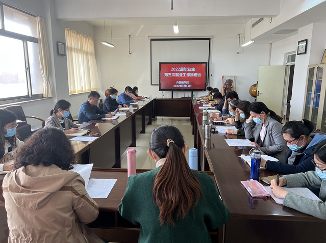 3月15日,外语学院于岱宗校区文理大楼321召开2022届毕业生第三次就业推进会,学院班子成员、系主任专业主任及全体辅导员参加会议。