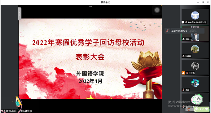 4月3日,外语学院举办“优秀学子回访母校”线上表彰大会,学院学生工作负责人、全体辅导员、全体学生干部和回访母校优秀学子参加会议。