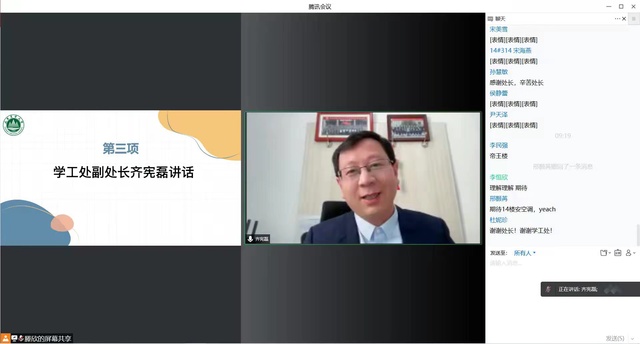 4月16日,外语学院线上举办宿舍文明月暨“小屋收纳师”照片征集活动启动仪式。学工处副处长齐宪磊、学院学生工作负责人、全体辅导员、学生干部和宿舍舍长等315人线上参加活动。