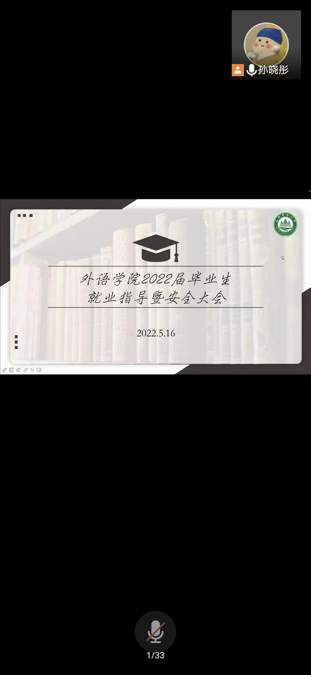 5月16日,外语学院通过腾讯视频会议方式,对2022届毕业生基层就业再动员、再宣传、再指导,学院学生工作负责人、辅导员及2022届全体毕业生参会。