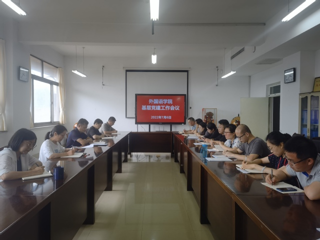 7月6日,外语学院在文理大楼321召开基层党建工作会议,学院党委委员,支部书记、副书记,全体辅导员参加会议。