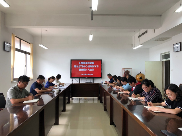 外语学院党委组织党委理论学习中心组集体学习、支部交流研讨、系室学习分享等多种方式,认真学习宣传贯彻学校第八次党代会精神,把全院师生员工思想和行动统一到党代会精神上来,把智慧和力量凝聚到落实党代会确定的各项任务上来。