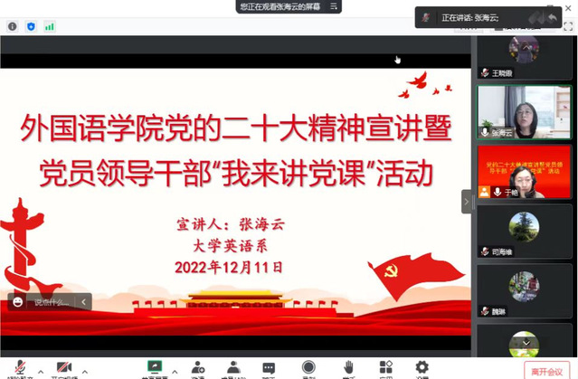 院领导为大学外语系教师讲授党课,宣讲党的二十大精神