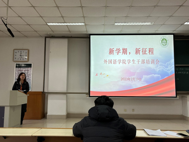 2月19日,外语学院在泮河校区N104召开学生干部培训会,学习传达学校八届二次全会精神,落实学生工作会议精神,研究部署新学期学团工作。学院学生工作负责人、全体辅导员及全体学生干部参加培训会。
