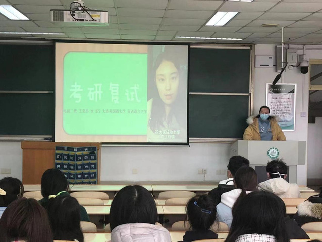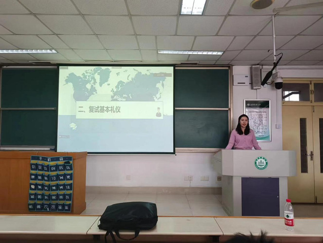 会上,辅导员刘雅静为毕业生进行复试礼仪指导,叮嘱学生外出赴考时注意出行安全。2018级成功考研毕业生王亚男、张贝灵和丁爽分别分享考研复试及调剂经验。
