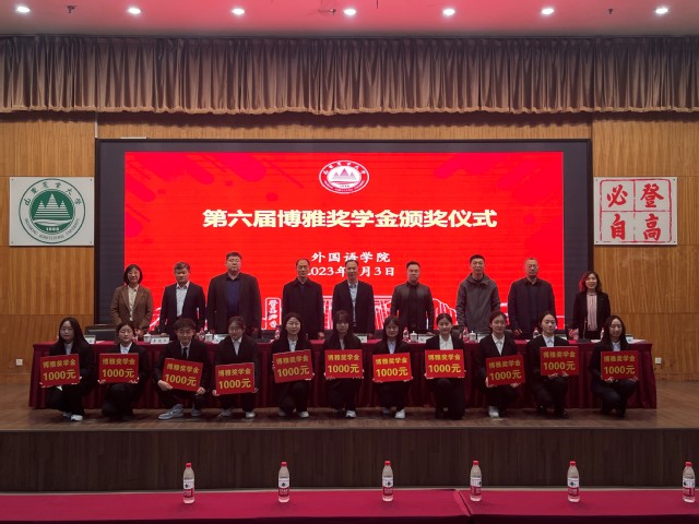 3月3日,外语学院在泮河校区第一开元网页版报告厅举办第六届博雅奖学金颁奖仪式,学校党委常委、副校长辛杰,学工处、后勤处、社合处和学院相关负责人,山东中品一禾餐饮有限公司、泰安科鼎特工贸有限公司企业负责人及2022级全体学生参加活动。