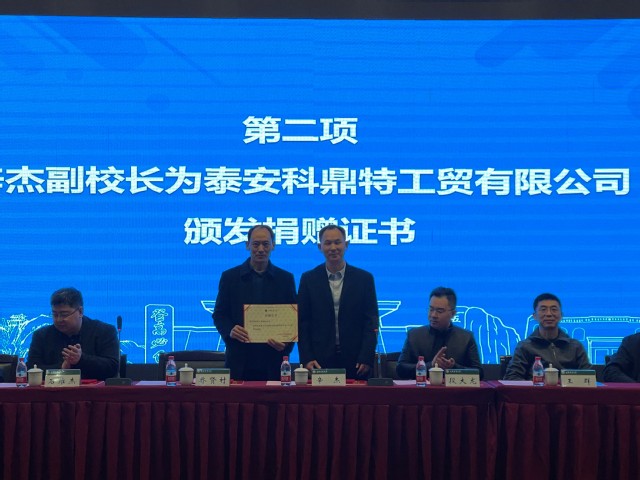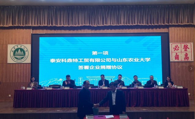 会上,辛校长为获奖学生颁奖,为泰安科鼎特工贸有限公司颁发捐资证书。学院与泰安科鼎特工贸有限公司签署山东农业大学企业捐赠协议,与中品一禾、泰安科鼎特公司负责人深入交流,深化校企合作,赋能学院高质量发展。学院党委书记李茂兵勉励同学们不要辜负社会和企业的殷切期望,珍惜荣誉,刻苦学习,积极实践,努力成长为适应社会需求的合格人才,并提出三点要求和希望。一要志存高远、勤奋学习,坚定理想信念,把个人理想追求融入党和国家的事业中,在为人民利益的不懈奋斗中书写人生华章;二要明理修德,学会感恩,积极践行社会主义核心价值观,继承和发扬中华民族传统美德,争做德才兼备的楷模;三要开拓创新、善作善成,在实践中求真知,在实干中长本事,让青春在全面建设社会主义现代化国家的火热实践中绽放绚丽之花。
