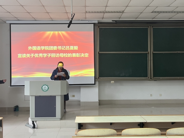 近日,外语学院举办“优秀学子回访母校”表彰大会,学院学生工作负责人、全体辅导员、全体学生干部和回访母校优秀学子参加会议。
