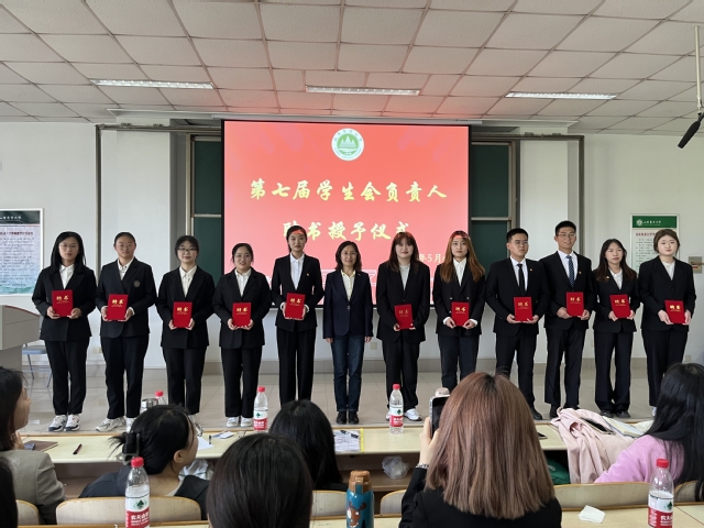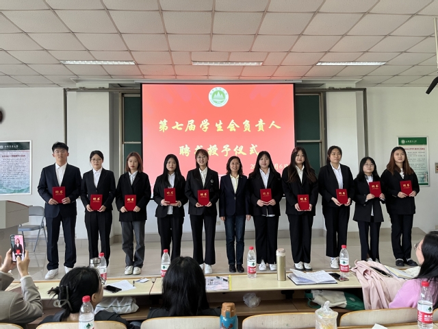 会上,孙慧敏为学院第七届学生会负责人颁发聘书。