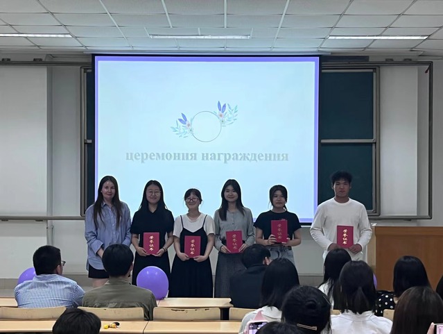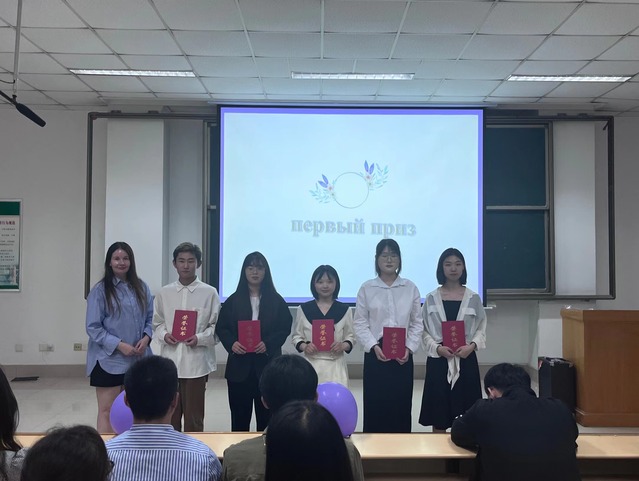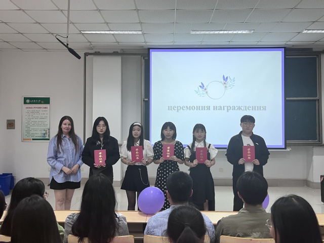 经过激烈角逐,最终来自第三组的常尚鑫、谢兴晨、张欢欢、付成春和陈周一凭借扎实的俄语基础和出色的表现能力荣获冠军,来自第一组的张英华、王笑雨、郭豪伟、赵丹和王昱获得亚军,来自第四组的房俊彤、马明珠、江祉颉、赵誉晴和李永鑫获得季军,俄语专业外籍教师奥克萨斯·维克多罗夫娜为获奖同学颁发奖状。
