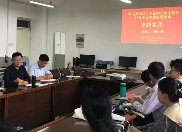 胡化坤从深刻领悟教育、科技、人才三位一体的战略意义,新时代我国教育发展取得的历史性成就,新时代新征程办好人民满意教育的整体思路和新时代新征程办好人民满意教育的重点任务四个方面,带领全体党员教师对党的二十大报告关于教育的重要论述进行深入学习。胡书记通过数据对比和现实案例分析,深刻剖析了新时代人民满意教育的整体思路和重点任务。他说,党和国家事业发展需要一支宏大的师德高尚、业务精湛、结构合理、充满活力的高素质专业化教师队伍。他要求大家结合当下时势、专业特点和学生特点,坚持立德树人,做学生满意的“四有”好老师,加强课程思政建设,创新教学手段,提升教学水平,守好课堂阵地,不断提高人才培养质量。