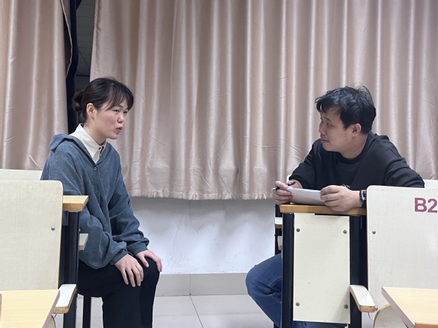 学而思淄博分校校长就学而思公司规模、工作内容,岗位介绍,薪资福利四个方面展开具体宣讲,他表示企业整体业务多元布局,能够助力新入职人员专业技能和职业素养的全面提升和快速成长。他通过现场问答互动的方式向学生详细介绍企业文化和招聘岗位。宣讲结束后,部分同学进行了现场面试。