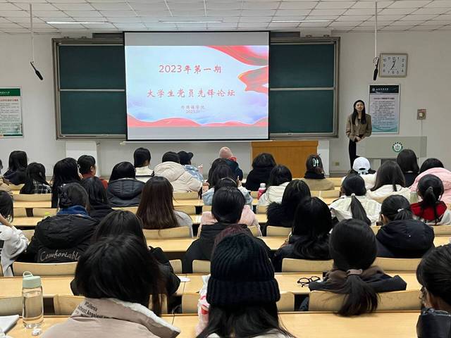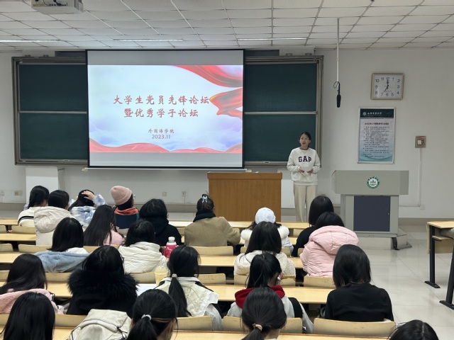 11月10日,外语学院在泮河校区综合楼N301举办大学生党员先锋论坛暨优秀学子论坛,2023级全体学生参加论坛。