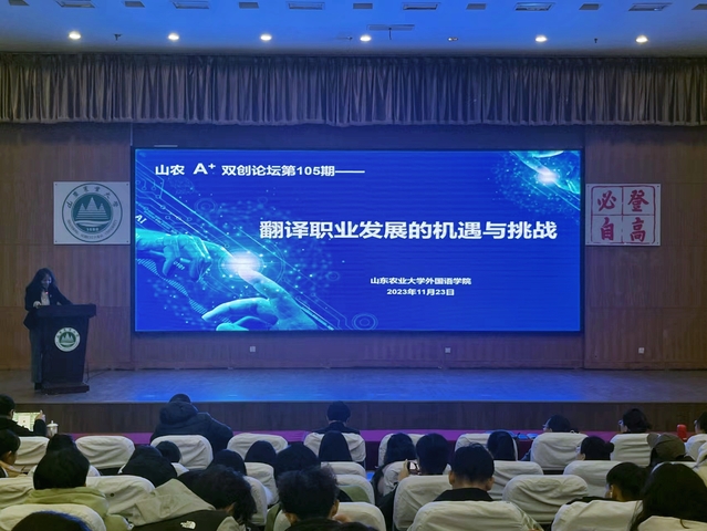 11月23 日,外语学院在泮河校区第一开元网页版报告厅举办山农A+双创论坛,福州译国译民集团有限公司董事长林世宋担任主讲人,部分研究生、本科生代表参加论坛。