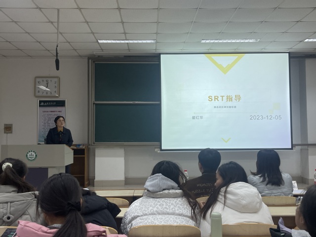 外语学院教授翟红华以“SRT项目”为主题,结合丰富的指导经验从内容、指导、成效三个方面对SRT展开讲解。她强调,外院学子要充分发挥专业优势,积极开拓创新。王文良围绕“挑战杯”大学生创业计划竞赛备赛攻略,从“挑战杯”是什么、赛事概况、评审依据、商业计划书及PPT制作技巧五个角度对“挑战杯”创业计划竞赛进行全面剖析。他提醒同学们要“俯下身子”,以严谨认真的态度对待科创竞赛。高山从自身参赛经验出发介绍项目筹备、比赛过程,着重强调了PPT制作的可观赏性,加深了同学们对创业竞赛的认识。我院21级本科生白钧月向同学们讲解如何进行项目选题和申报书撰写、以及项目打磨中期和后期的流程。