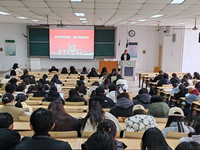 讲座中,李庆亮从认知互联网、网络素养、纷繁网络信息、保护网络个人信息、保护网络国家安全、维护网络意识形态安全六个方面,为同学们讲解网络安全知识。通过真实案例,引导学生不在网络上制作、转播不实信息,自觉抵制有害信息传播,明确网络“红线”,细心辨别和筛选有害信息,提升网络素养,坚定维护个人信息和国家网络安全。